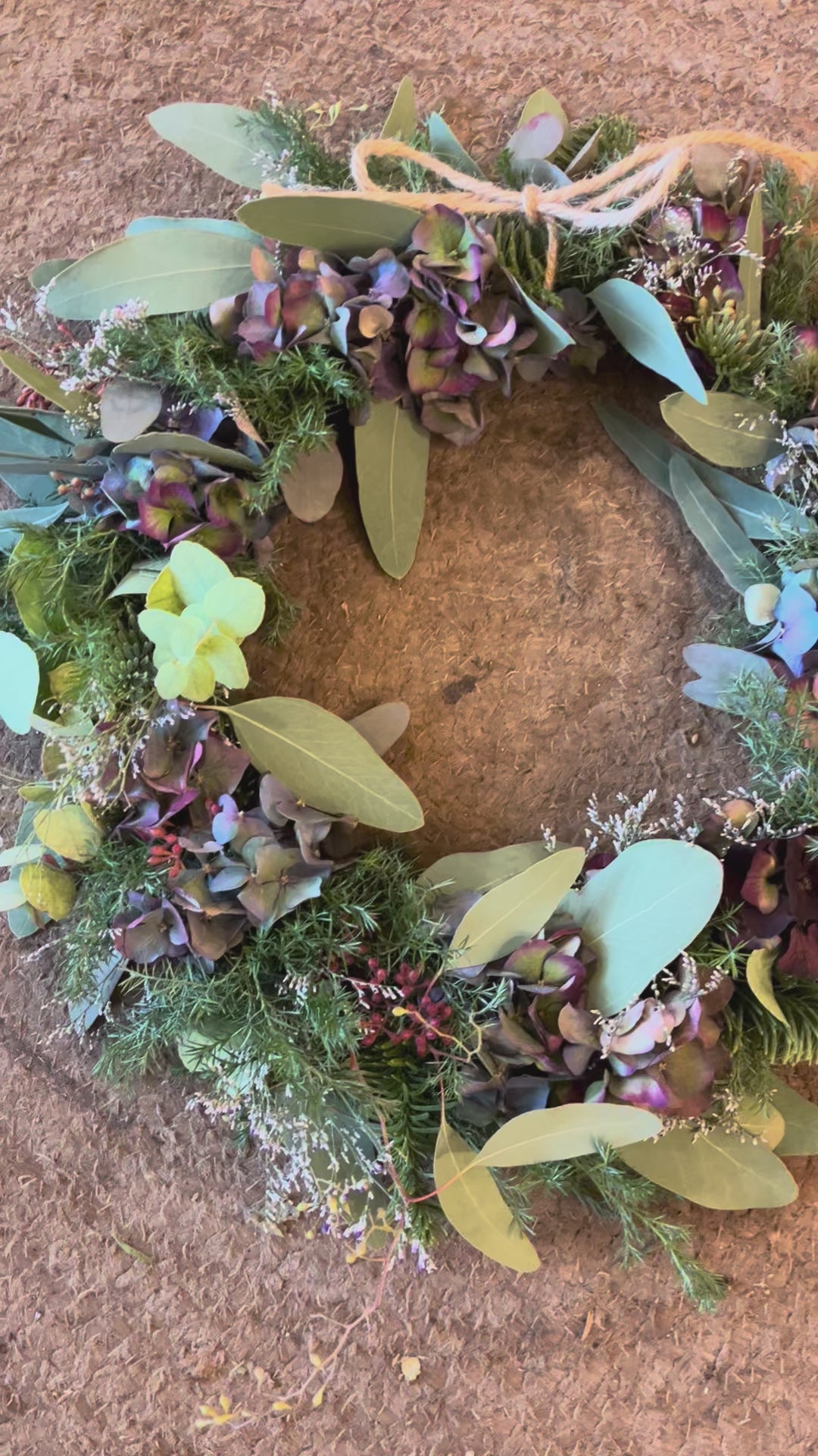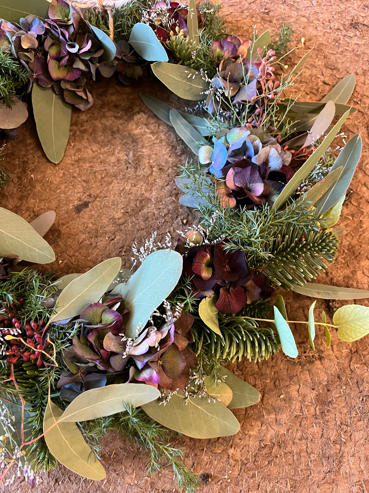 Alle materialer er ikke dryssende. Kransen kan hænge på døren ude eller inde.