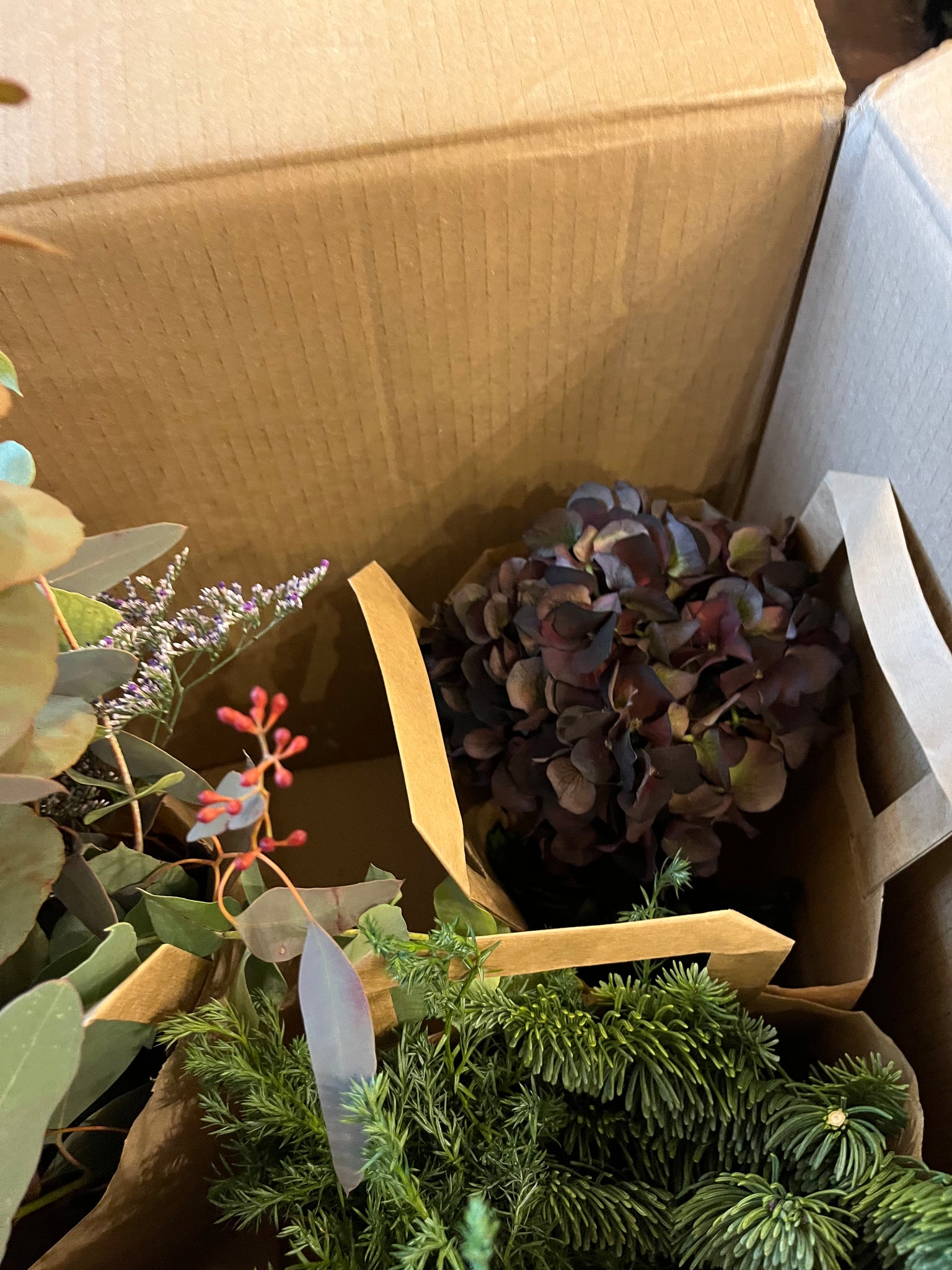 Med denne DIY kasse får du materialer til en smuk vinterkrans til døren.